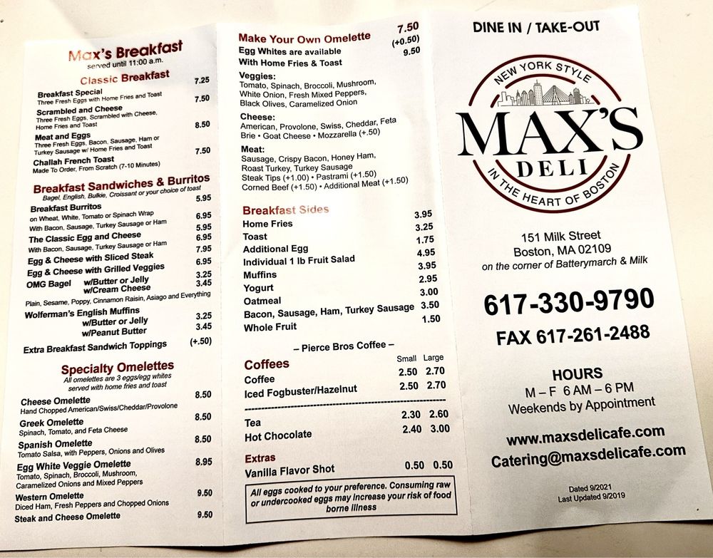 Welcome to Max’s Deli Cafe, a delightful oasis nestled in the heart of Boston at 151 Milk St. This charming eatery specializes in classic deli fare, offering a diverse menu perfect for any meal. From mouth-watering cold sandwiches like the Classic Italian and Jumbo BLT to hearty soups such as Lobster Bisque and Bubbies Chicken Soup, there’s something for everyone.